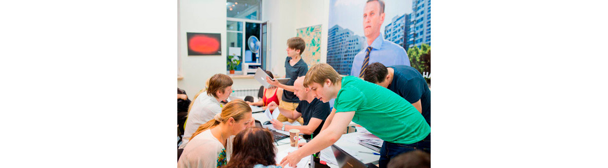 «По газетам у нас два проекта. Мы делаем общую для всей Москвы газету, тираж которой 4 млн экземпляров, а есть еще районные газеты, которые делают на основе встреч Навального с избирателями, а потом раздают в тех районах, где выступал кандидат», — говорит Виктор, профессиональный журналист, который работает в одном из прокремлевских СМИ, а в свободное время помогает в штабе. Таких, как он, здесь немало — приходят люди из государственных новостных агентств и провластных газет. На бэкграунд здесь не смотрят, хотя служба безопасности штаба тщательно проверяет всех. Одного корреспондента после такой проверки выгнали.