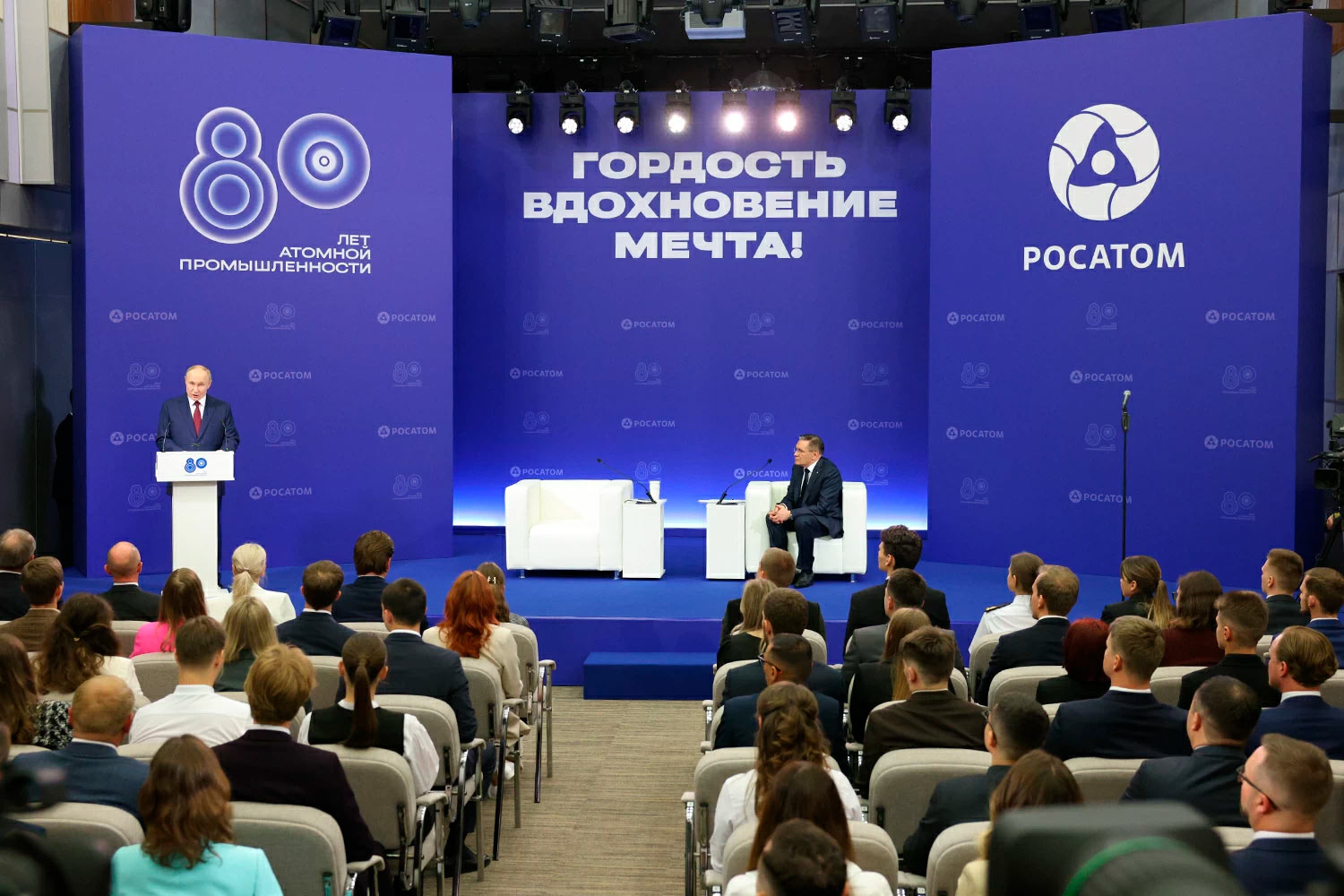 Владимир Путин 22 августа приехал в Российский федеральный ядерный центр – Всероссийский научно-исследовательский институт экспериментальной физики в г. Сарове Нижегородской области. Фото: Максим Стулов / Ведомости