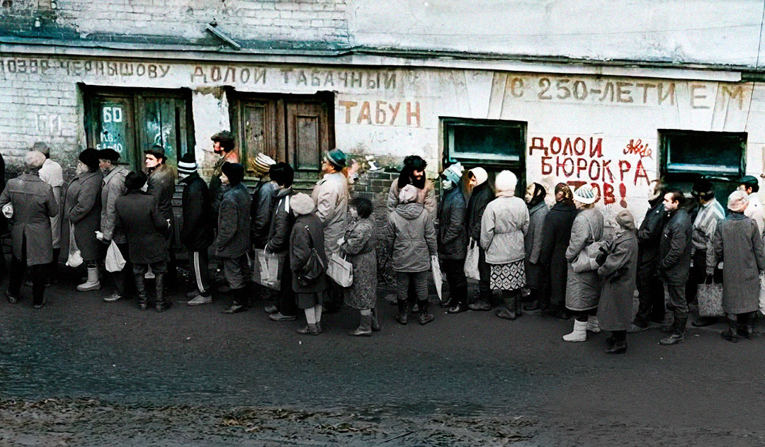 Фото: очередь в Перми, 1990 г. / pastvu.com.